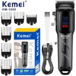 یکی دیگر از ماشینهای اصلاح شرکت کیمی، ماشین اصلاح موی سر و صورت کیمی مدل KM-1550 است که که وزن نسبتا کم، قدرت موتور بالا و طراحی بی نظیری دارد. 6 عدد شانهی اصلاح همراه ماشین اصلاح ارائه شده که توسط آنها میتوان موها را در اندازههای مختلف کوتاه کرد. در انتهای ماشین اصلاح حلقهای برای آویزان کردن آن وجود دارد. لازم است بعد از هر بار استفاده، تیغهها را تمیز کرده و سپس روغنکاری شوند. این کار در مرتبهی اول و قبل از اینکه کالا به دست شما برسد، توسط کارخانه انجام میشود و ممکن است با باز کردن در اولین مرتبه، اثرات آن را مشاهده کنید. در کنار این دستگاه برس تمیزکننده و روغن تیغه ها عرضه شده است. اگر برای کوتاه کردن روزمرهی موهای سر یا ریشتان نیاز به یک ماشین اصلاح دارید، این ماشین اصلاح میتواند این نیاز را پاسخگو باشد. این مدل در عین استقامت بالا، از موتورپرقدرت ، تیغههای از جنس استیل ضدزنگ و طراحی مناسب بهره میبرد. با توجه به بازهی قیمتی و کارایی بالا، این ماشین اصلاح میتواند بهترین انتخاب برای مصارف خانگی و آرایشگاهها باشد.