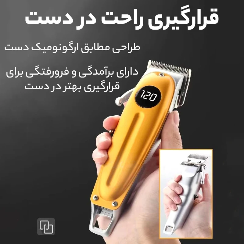 جنس تیغهها: استیل ضد زنگ ، نوع: حجم زن -دارای اهرم تنظیم درجه ، بیشترین دور موتور: 7000 دور در دقیقه |